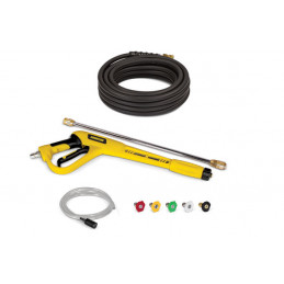 Komplett Rengöringspaket Följande tillbehör medföljer: 15.2 m högtrycksslang, spolhandtag, spolrör och fem munstycken med snabbkontakter, slangupphängning och hållare för spolhandtag, 1.2 m slang för rengöringsmedel, samt oljetratt.