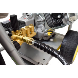 Högtryckstvätt utrustad med tvåhjulig vagn, handtag och antivibrationsfötter. Högpresterande kolvpump med vevstakessystem. Automatisk by-pass ventil. Tryckjustering. Termisk ventil. Inbyggt tvättmedelssug. Drivs av Honda-motor med sensor för låg oljenivå. Inspekterbara oljenivåer. Utloppspluggar och utloppsöppningar för att underlätta underhållet och...