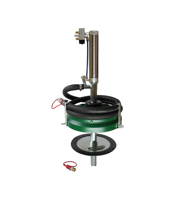 Komplett med 1,5 m slang och snabbkoppling Hansen-typ. Fatlocket Ø 330 mm. För lättflytande fett.
