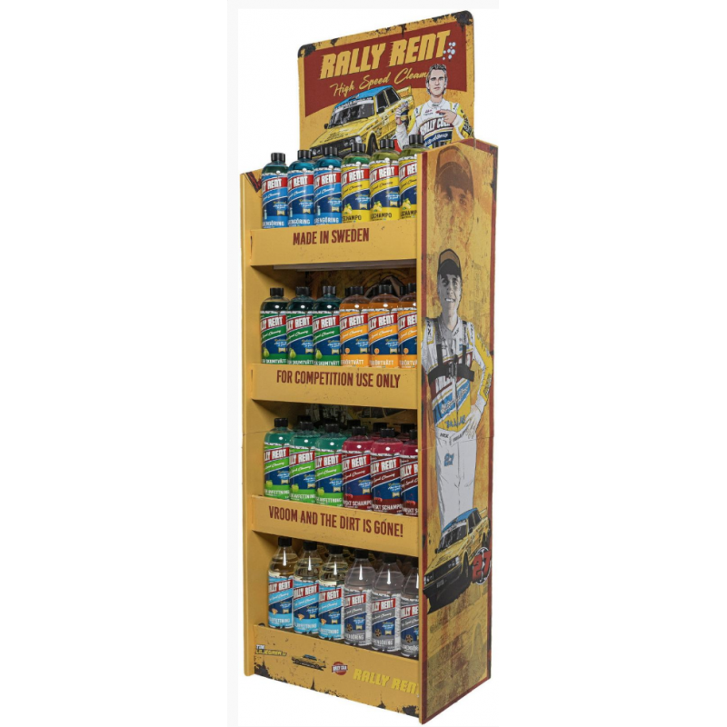 Anpassat golvställ för exponering i butiken. Levereras med: