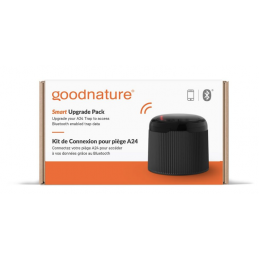 Med Goodnature Smart Cap kan du enkelt uppgradera din befintliga A24-fälla till en smart, uppkopplad enhet. Genom att byta ut fällans topplock mot detta Smart Cap ansluter du fällan till Goodnature-appen via Bluetooth. Du får notiser vid varje fångst och håller enkelt koll på när det är dags att byta kolsyrepatron eller lockbete – helt utan att behöva öppna fällan.