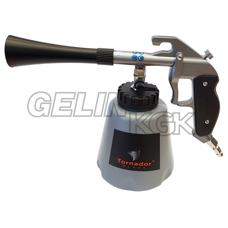 Rengöringsverktygen har en oscillerande slang i munstyckstratten. Den skapar en tornado som effektivt och enkelt trycker undan smutsen. Luftdrivet rengöringsverktyg som används för invändig rekonditionering av fordon od.