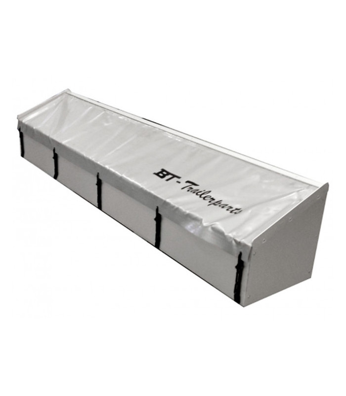 BT Virkeslådan med presenning är tänkt för förvaring av bommar, strövirke o.dyl. Den monteras längs med ramen. Den tillverkas i anodiserad aluminium och lock av presenning. Botten av gallerplåt. Inga fästen medföljer.