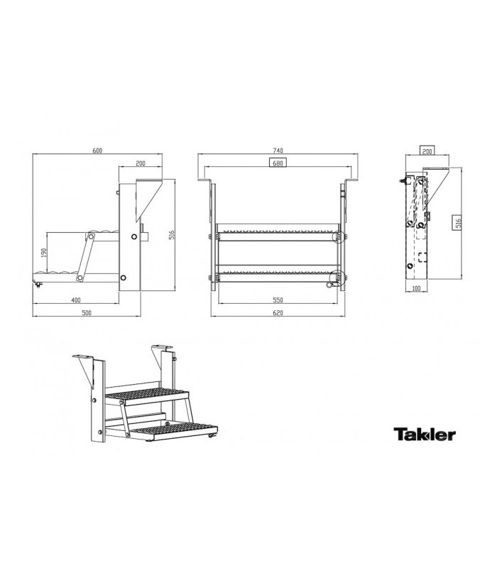 Utfällbart fotsteg i förzinkad stålplåt. BxHxD när fotsteg är utfällt: 170x178x174 mm BxHxD när fotsteg är hopfällt: 35x178x174 mm