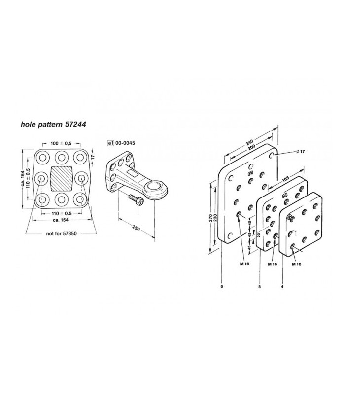 Dragkoppling med hålbild 160x100 mm, diameter på tappen är 45 mm, dragkopplingens sprintdiameter är 48 mm.