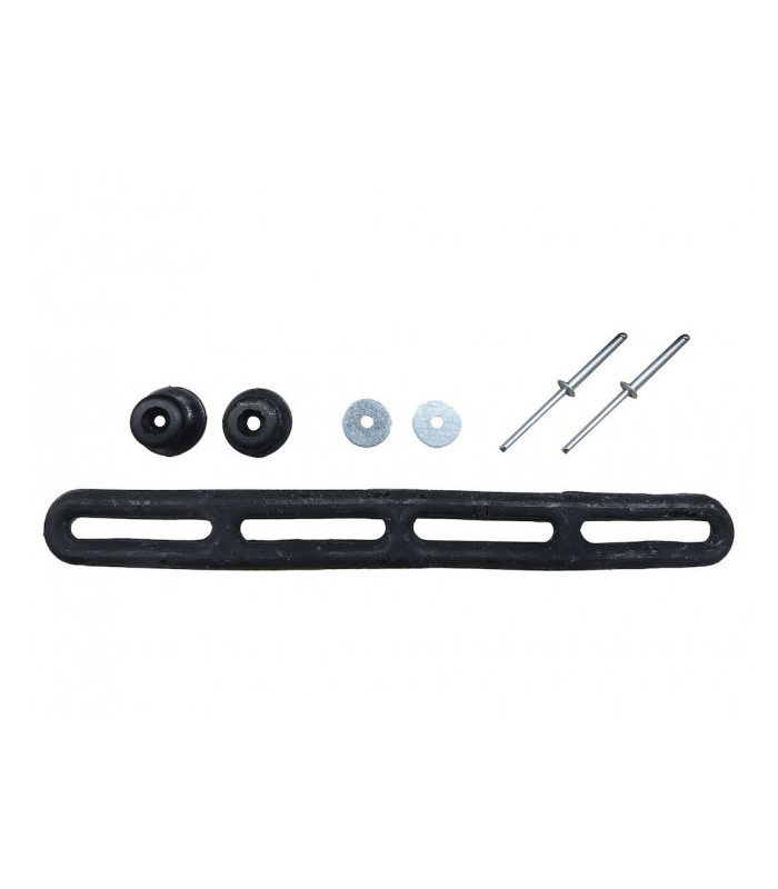 Justerbart skärmfäste i slagtåligt nylonutförande för 42,4 mm rördiameter. Totallängd 295 mm. Hålavstånd 260 mm (4-kantshål). Justeringsmöjligheten i spåret är 100 mm. Skruvar ingår.