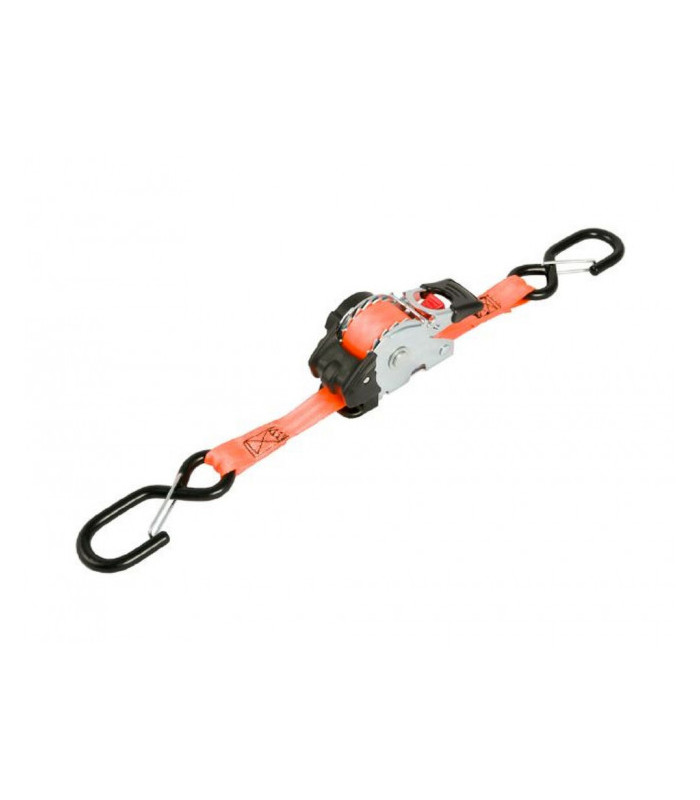 En portabel bandupprullare för spännband. Rullar enkelt ihop banden på flaket och kan sedan förvaras i verktygslådan efter användning.