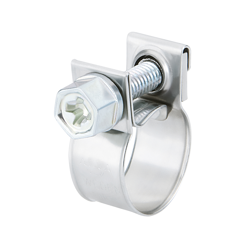 Beskrivning Förzinkat kolstål. Bandet är av ett stycke utan svetspunkter, med uppvikta kanter. Sexkant skruvskalle 7 mm.