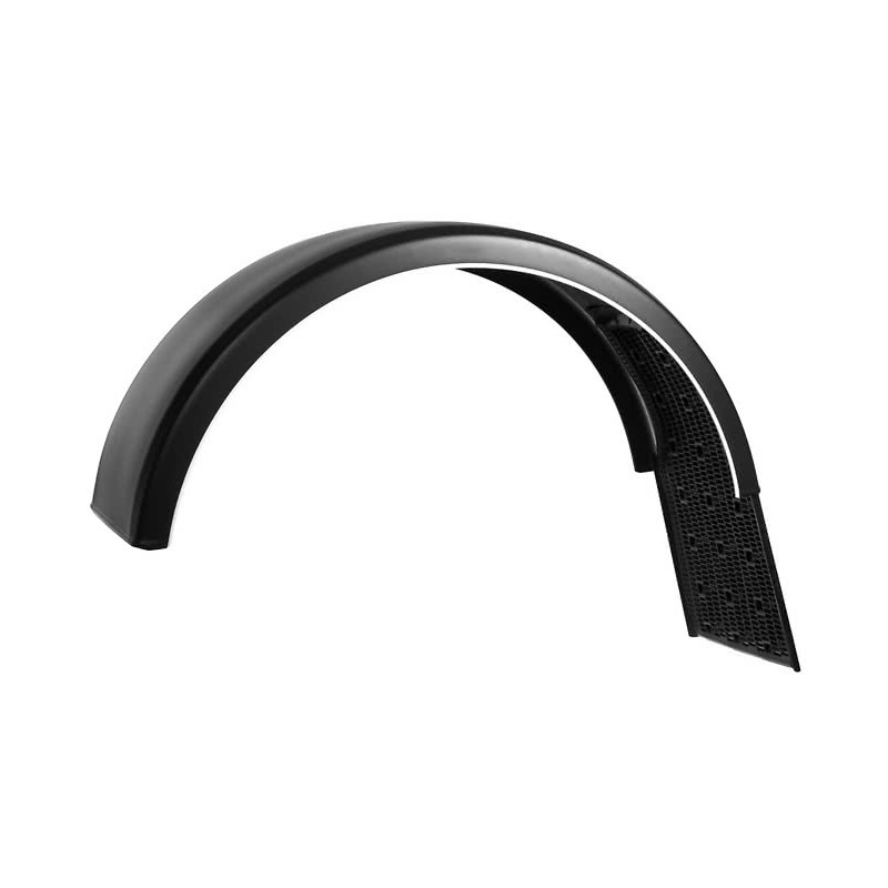 Den integrerade antispray-insatsen fångar upp vattnet inuti skärmen och leder det kontrollerat tillbaka till vägbanan. Detta minskar spridningen av smuts och vatten på chassit och förbättrar sikten bakåt för chauffören, samtidigt som det underlättar för medtrafikanter.