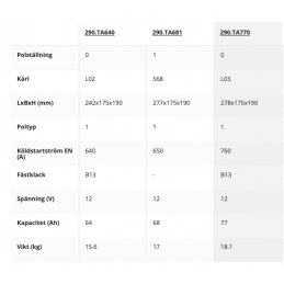 Startbatteri Tudor TA770 High Tech på 77 Amperetimmar.