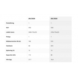 Dual startbatterier från Tudor är utvecklade för användning i husbilar, husvagnar och fritidsbåtar. Allround batterier som lämpar sig både för start och förbrukning t ex. i båtar som har en gemensam batteribank men batterierna kan även användas för att driva elektriska vinschar, propellrar eller annan utrustning.