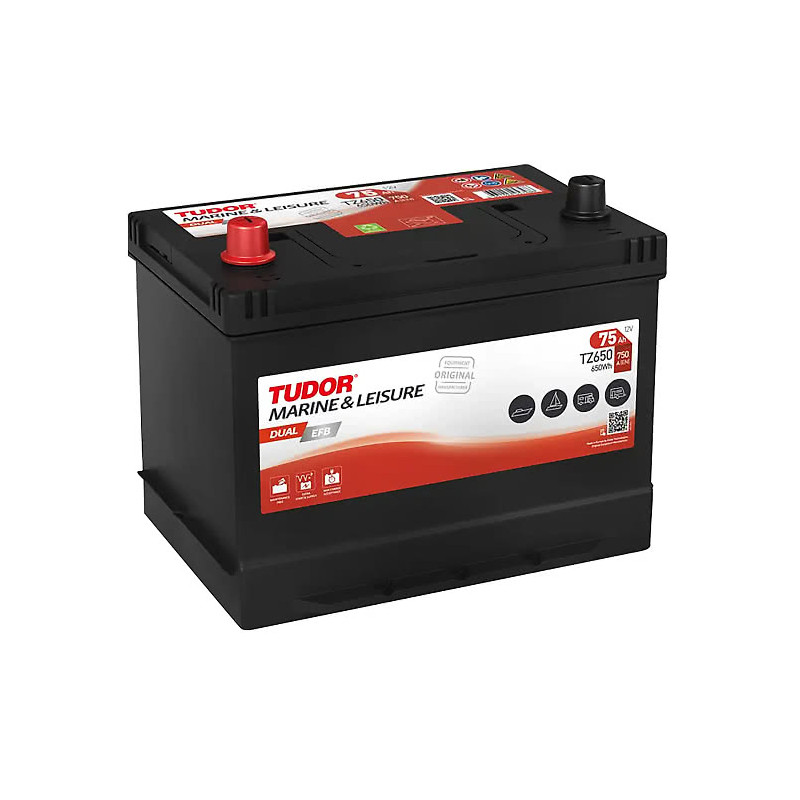 Nu kommer Tudor med ett EFB med samma mått som storsäljaren TR350. Tudors nya TZ650 uppgraderar din befintliga bank med 75 Ah bly/syra till nästan det dubbla i kapacitet. I samma storlek som innan får du ut hela 650 Wh och 750 A i startström (CCA). Batteriet lämpar sig för alla installationer som har krav på både höga startströmmar och förbrukning. Polerna på toppen är placerade så att kablarna går att dra över batteriet för enklaste och bästa installationen.