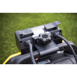 Robust och Tillförlitlig Design Kontrollenheten har IP54-klassning och är utrustad med två normala eluttag. Boxen är försedd med två kablage med fyrkantskontakter som enkelt kopplas in i de båda elverkens svart/röda, fyrkantiga parallellkopplingsuttag. Kontrollenheten synkroniserar sedan elverken så att de arbetar tillsammans som ett, vilket gör att du kan använda deras eluttag precis som hemma. Kontrollboxen är dessutom designad för att fästas på handtaget till en Mighty Atom, vilket gör den enkel att använda och förvara.