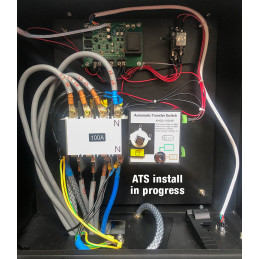 Enkel Installation och Användning Den nya ATS:en är väldigt enkel att koppla in och använda. Det medföljer ett 5 meter långt kablage till elverket som kopplas in i elverkets ATS-ingång. Notera att elverket måste ha en ATS-ingång. När det vanliga elnätet är tillgängligt, underhållsladdas även elverkets startbatteri automatiskt.