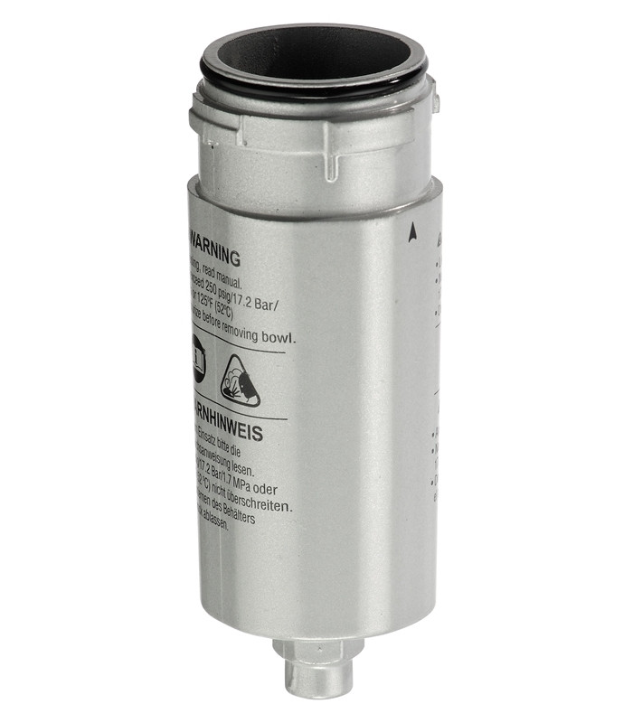 Metallbehållare typ FExtra metallbehållare till tryckluftsfilter typ F. För filter med siktglas på modell 1500 & 2000. Modell 1000 har ej siktglas. Utrustade med automatisk dränering.Passar till:Modell 2000