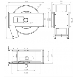 Luft - Vatten, 18 bar ​Slangvinda försedd med ställbara utmatningsarmar. Lätt att placera, även i trånga utrymmen. Kan även takmonteras. Vindan är pulverlackerad och utrustad med returfjäder. Kan kompletteras med svängbart väggfäste om slangen skall dras ut eller matas in i sidled. Slitaget på vindan blir mindre och slangen rullas upp jämnare....