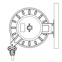 Luft - Vatten, 18 barSlangvinda försedd med ställbara utmatningsarmar. Lätt att placera, även i trånga utrymmen. Kan även takmonteras. Vindan är pulverlackerad och utrustad med returfjäder. Kan kompletteras med svängbart väggfäste om slangen skall dras ut eller matas in i sidled. Slitaget på vindan blir mindre och slangen rullas upp jämnare....