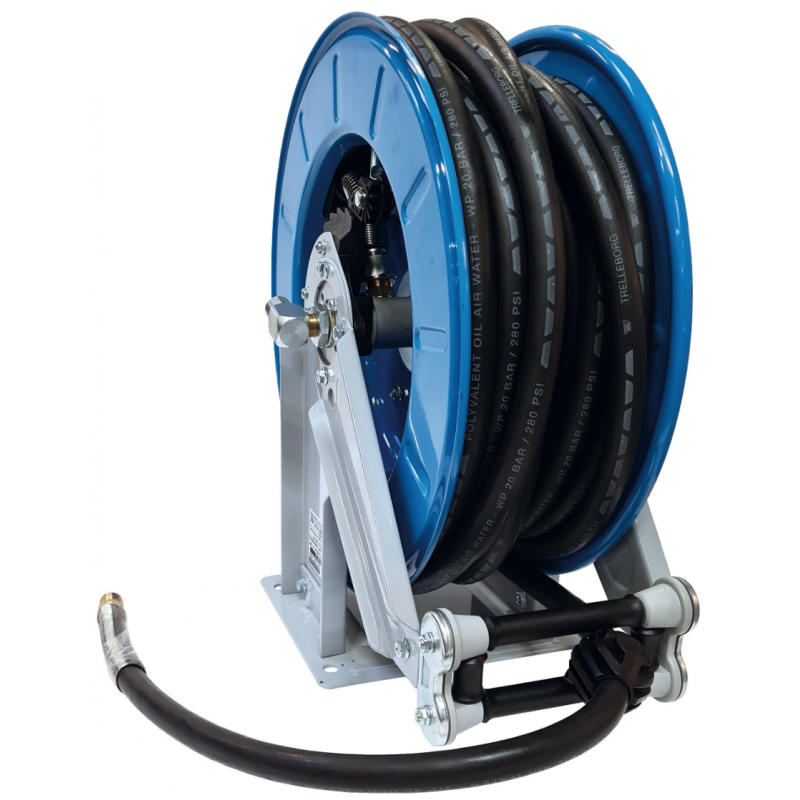 Designad för att distribuera luft. Slangen rullas upp automatiskt men kan av användaren stoppas i vilken längd som helst. Konstruktionen är av varmgalvaniseratstål och belagd med elektropolyesterpulver resistent mot UV-strålar. Slangstyrarmarna kan fixeras i tre olika lägen beroende på hur slangvindan installeras.