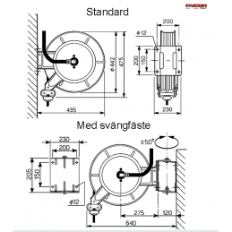 Designad för att distribuera luft. Slangen rullas upp automatiskt men kan av användaren stoppas i vilken längd som helst. Konstruktionen är av varmgalvaniseratstål och belagd med elektropolyesterpulver resistent mot UV-strålar. Slangstyrarmarna kan fixeras i tre olika lägen beroende på hur slangvindan installeras.