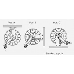 Slangstyrarmarna är justerbara i tre olika lägen enligt till slangupprullningsinstallationen (pos. A-B-C).